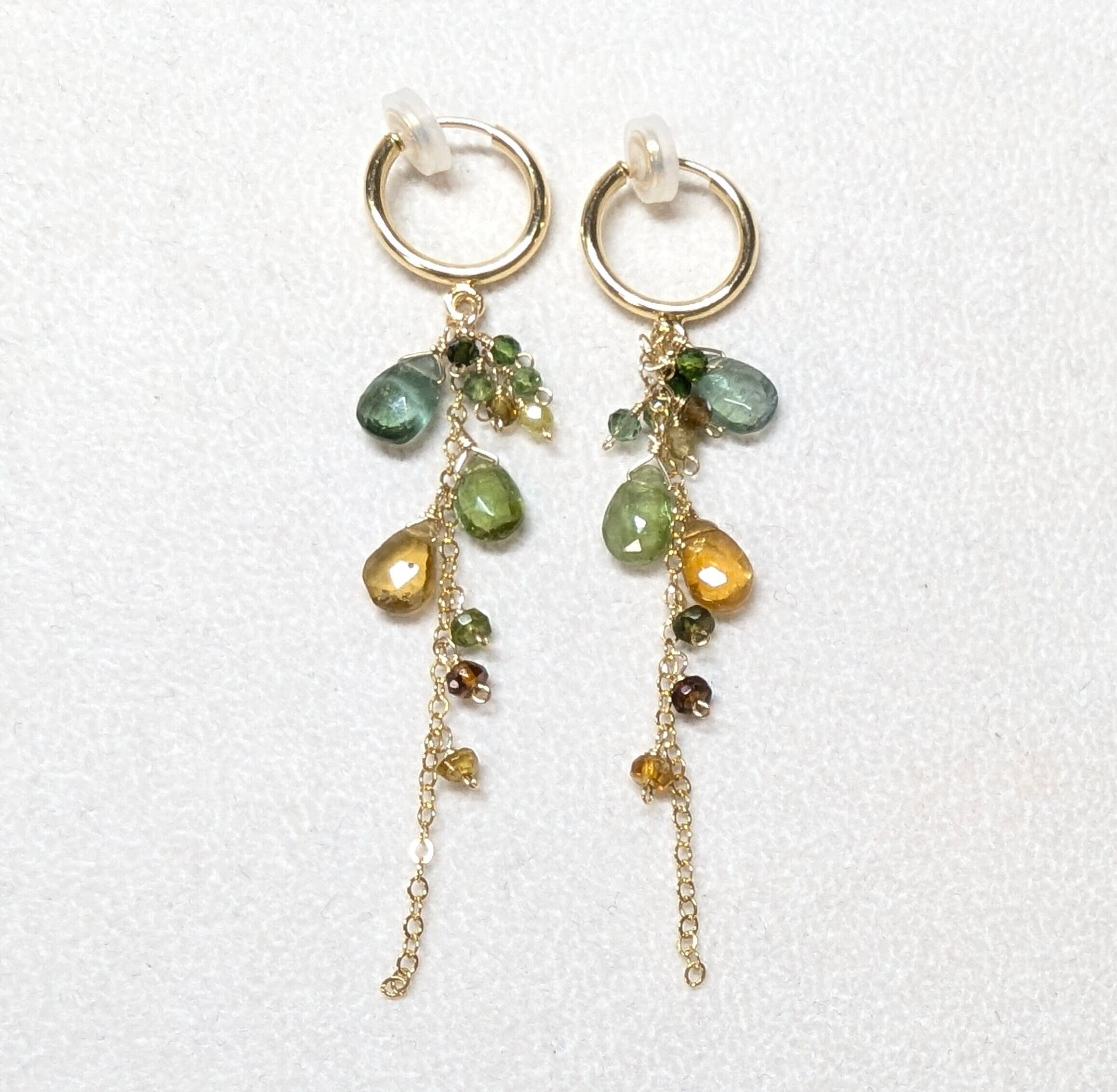 グリーン×イエローロングフープイヤリング